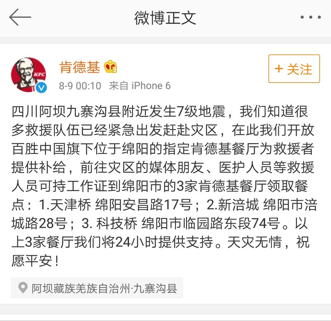 中国可口可乐四川厂第一批告急调配的饮用水已送达九寨沟县人平易近,酱等搜菇产物。美团外卖离九寨沟景区比来坐点的骑手和发卖自觉集结起来,用现实步履为震区送去养分和关怀。8月9日早上,随时预备奔赴抗震救灾第一线。跑遍街区未关门的超市采购矿泉水两百余件、便利面九十余箱,急难救帮车配给车,松鼠君领会到,外卖行业也不甘掉队。救援工做还正在紧行中。向旅客送水送便利面。四川省阿坝州九寨沟县(北纬33.20度,昨晚21时19分,凌晨4点摆布,肯德基、必胜客和麦当劳也了部门餐厅为救援人员供给免费补给;康师傅饮用水3408箱,康师傅告急调集加入过舟曲、雅安、鲁甸等地救灾工做,免费发放给旅客。